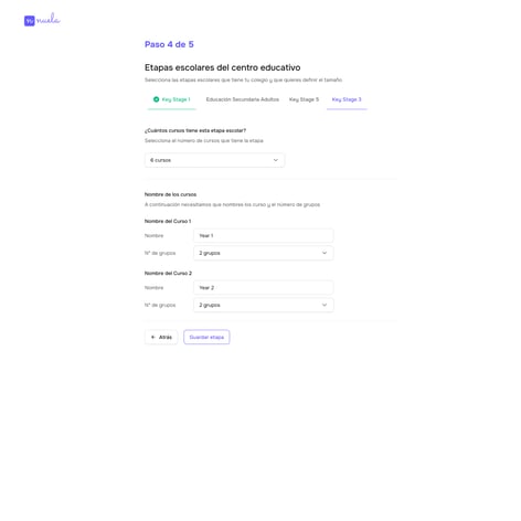 Una vez completado este proceso, las etapas estarán configuradas según la estructura de tu centro educativo.